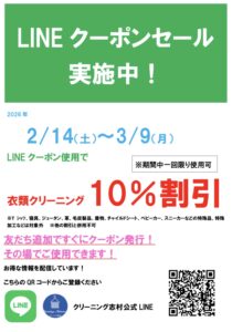 こんにちは! ただ今、クリーニング志村ではLINEクーポンセールを実施中です! LINEクーポンご利用で衣類クリーニング10%OFF! (お一人様一回限...