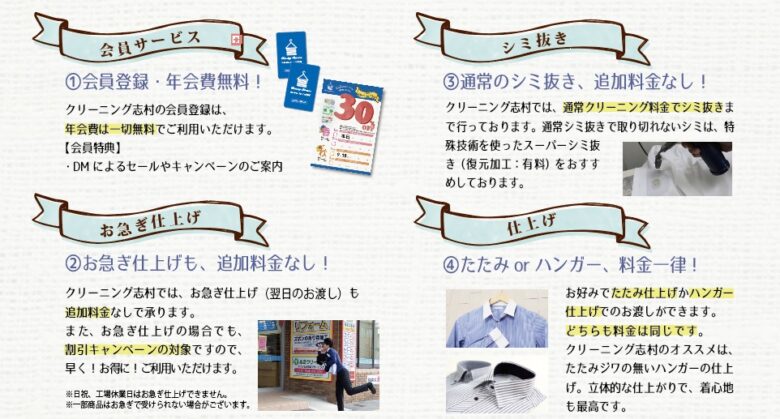 通常なら追加料金がかかる“お急ぎ仕上げ”が、クリーニング志村なら無料で利用可能。
