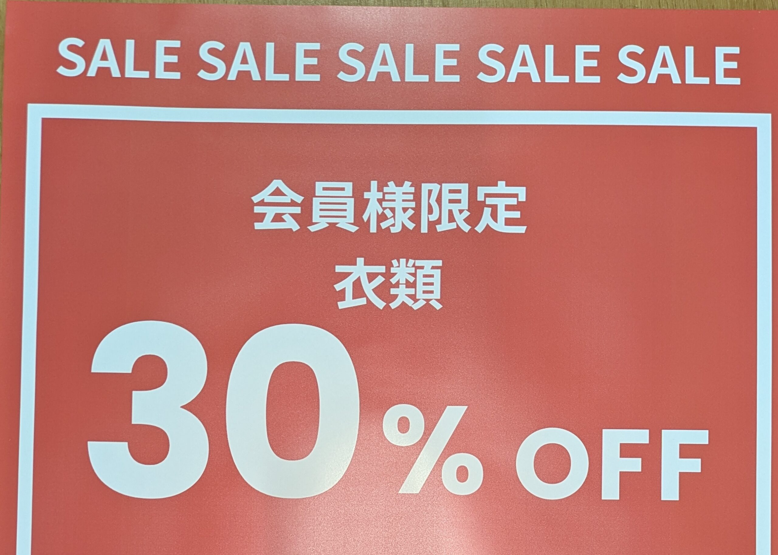 などの衣類が対象となり、通常価格から30%OFFでご利用いただけます。