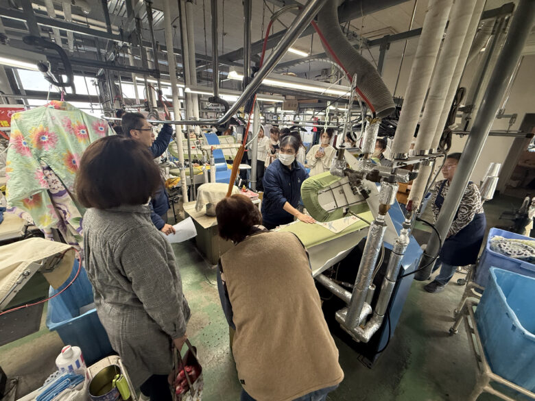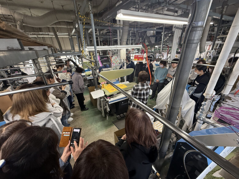 そして、工場の奥からも熱気が伝わってきます。 生産スタッフたちの技術勉強会です。