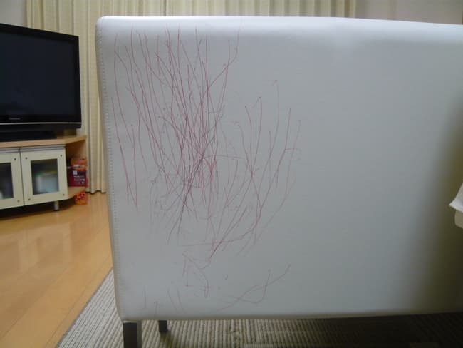 今回は、合皮ソファーにボールペンで"作品"を描かれてしまった実際の例を下に、その解決法を紹介いたします。